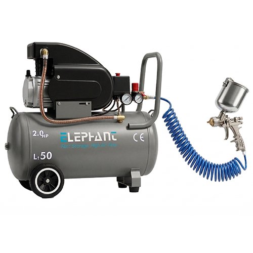 Elephant Air Compressor 50 L 2 HP AC 50 C with Paint Spray Gun PR-01, 1.4 mm and PU Pipe 10 m Coil